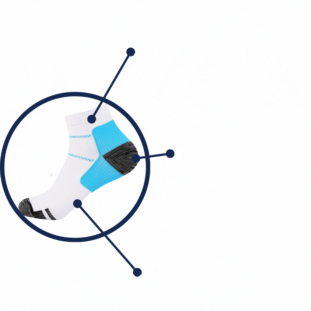 ARCHEASE® compressiesokken werken door nauwkeurige druk op de voeten uit te oefenen, waardoor de bloedcirculatie wordt bevorderd en vermoeidheid wordt verminderd. Ze zijn ontworpen om zwelling te voorkomen en bieden essentiële ondersteuning aan de spieren.