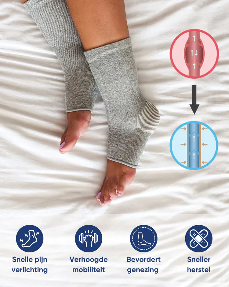 ✓ Betere bloedcirculatie – De lichte compressie stimuleert de doorbloeding, versnelt genezing en vermindert spiervermoeidheid. Geschikt bij neuropathie, artritis en peesontsteking.